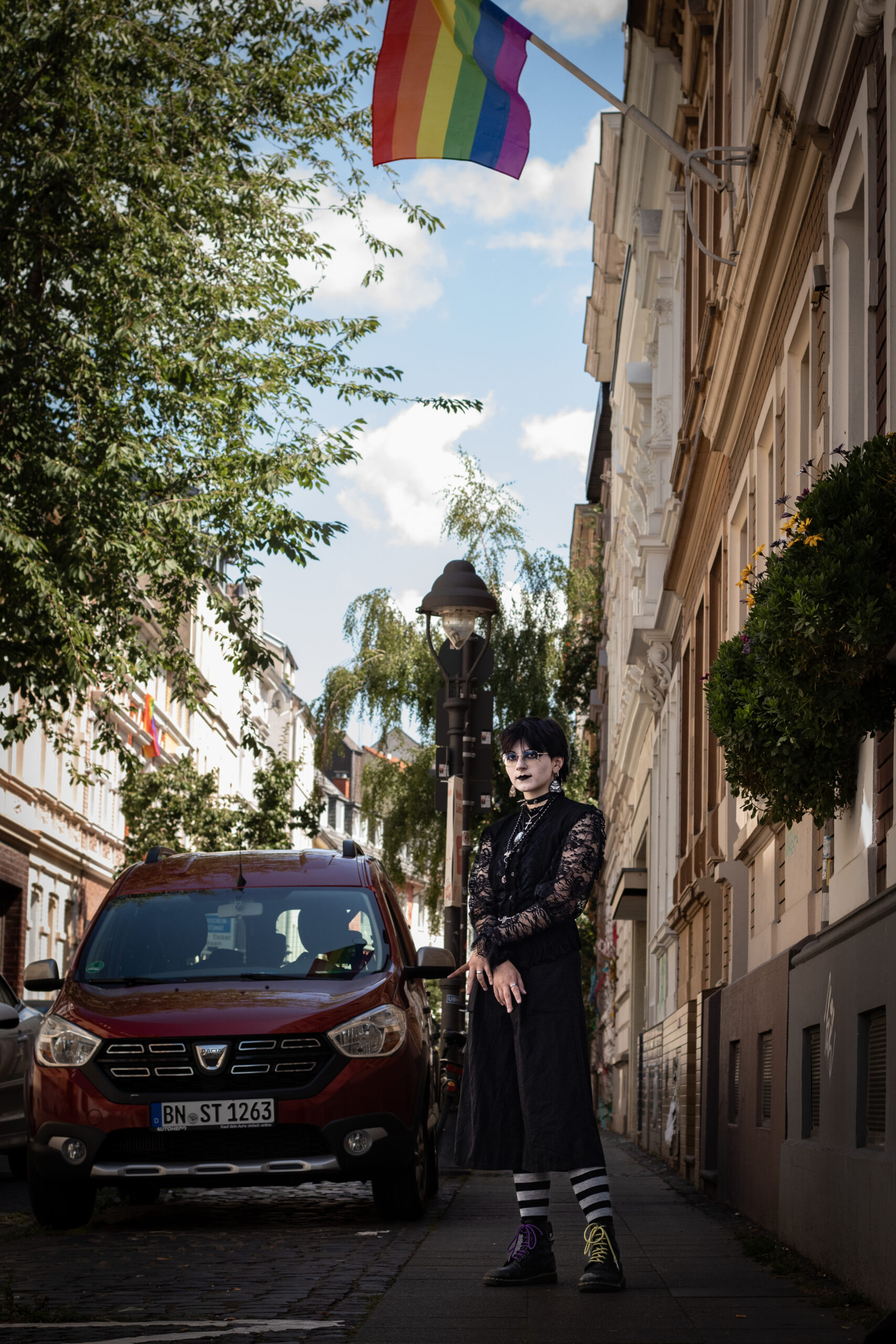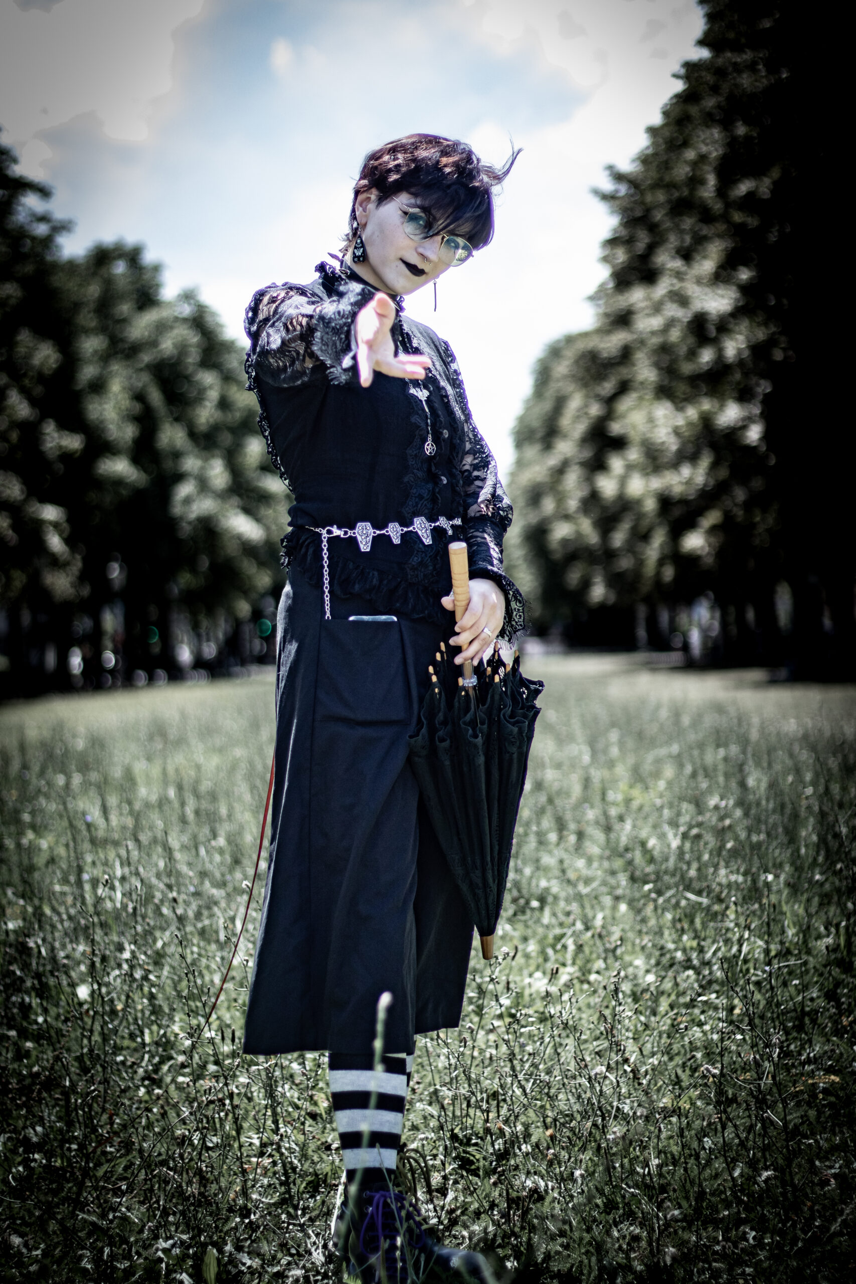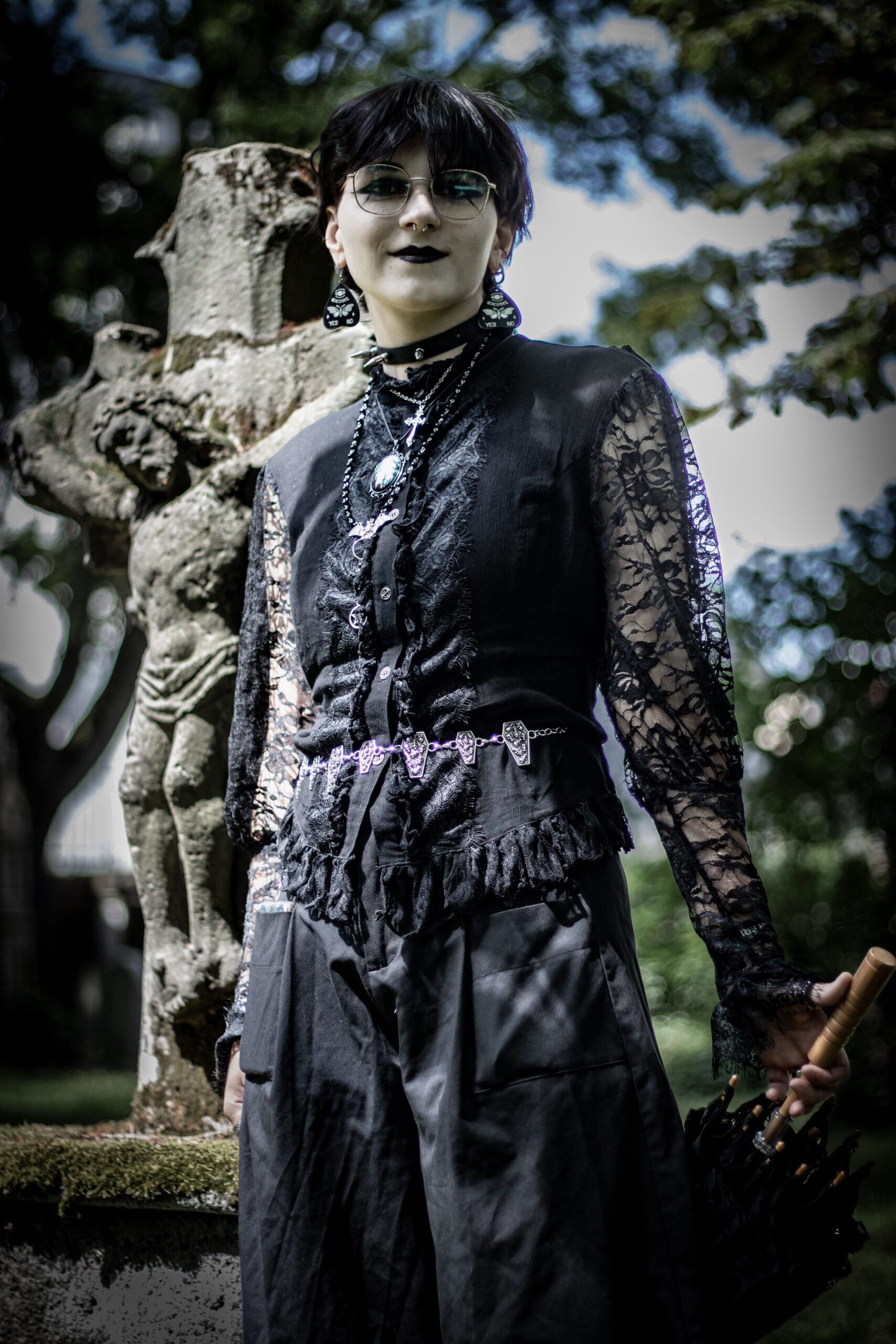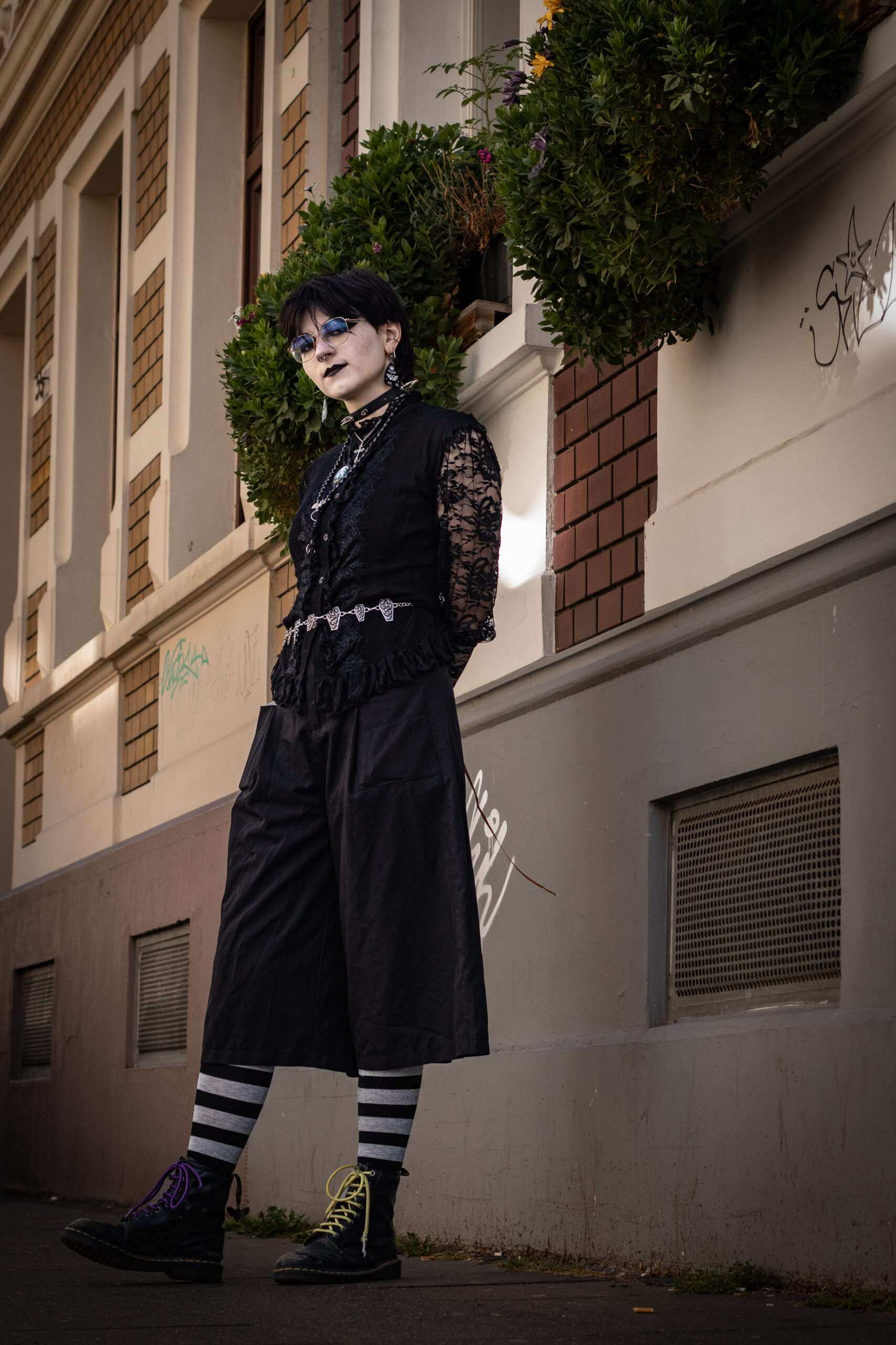Noah hatte sich für sein Shooting einen düsteren Vibe gewünscht, passend zu seinem Outfit. Auf seinen Wunsch hin haben wir unter anderem auf einem Friedhof fotografiert – eine ungewöhnliche, aber sehr passende Location. Die entstandenen Aufnahmen haben eine besondere Ästhetik, die mir persönlich ausgesprochen gut gefällt.