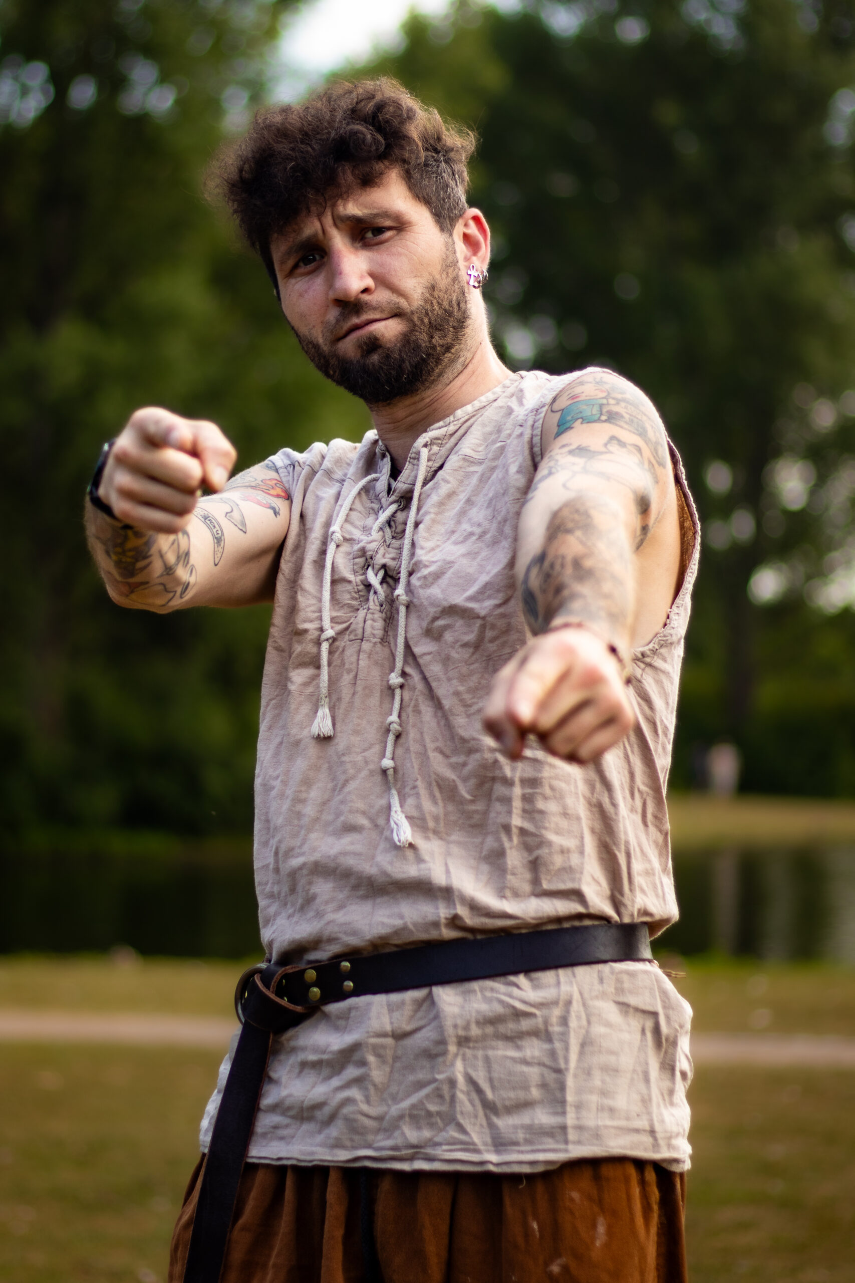 Robin brachte verschiedene Outfits mit, darunter auch ein mittelalterliches, das seine Leidenschaft für Live Action Roleplay widerspiegelt. So sind abwechslungsreiche und persönliche Aufnahmen entstanden, und das Shooting hat uns beiden richtig viel Freude gemacht.